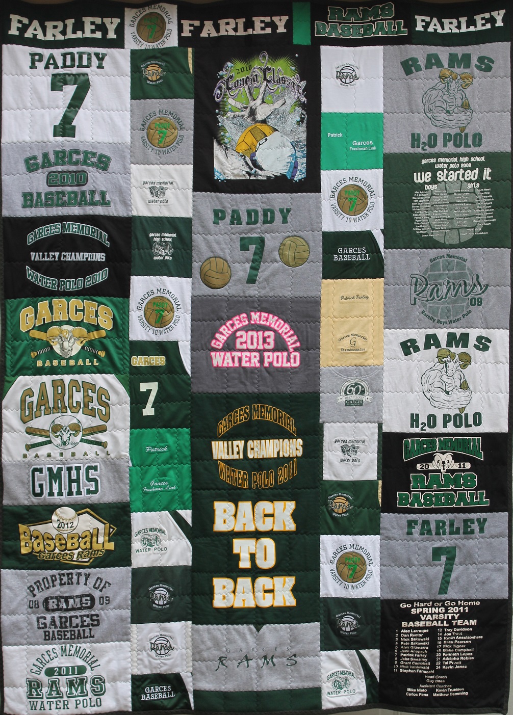 Full size memory quilt. All parts of the shirts were used for this quilt.